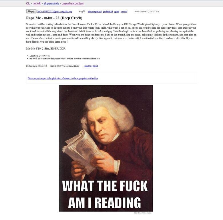cock and shove it all the way down my throat and held it there as I choke and gag. You then begin to their my throat before grabbing me, shoving me against the