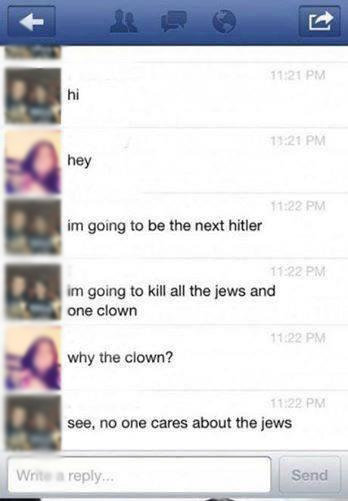 No one cares about the Jews... Flag jimjamthepoet (See more...) next random - Fav Favorite Comment ✖ Top NextComment Ah facebook, will your wonders never cease? next Tags: jews | failbook going he be the next hitler going to kill all the let' s and me dawn my the clown? eat. no tune cares ennui the jaws ... +8 Views: 3246 Favorited: 0 Submitted: 05/26/2013 Share On Facebook -Favorite +Favorite Unsub from jimjamthepoet Subscribe to jimjamthepoet