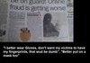 I better wear Gloves, don' t want my victims to have