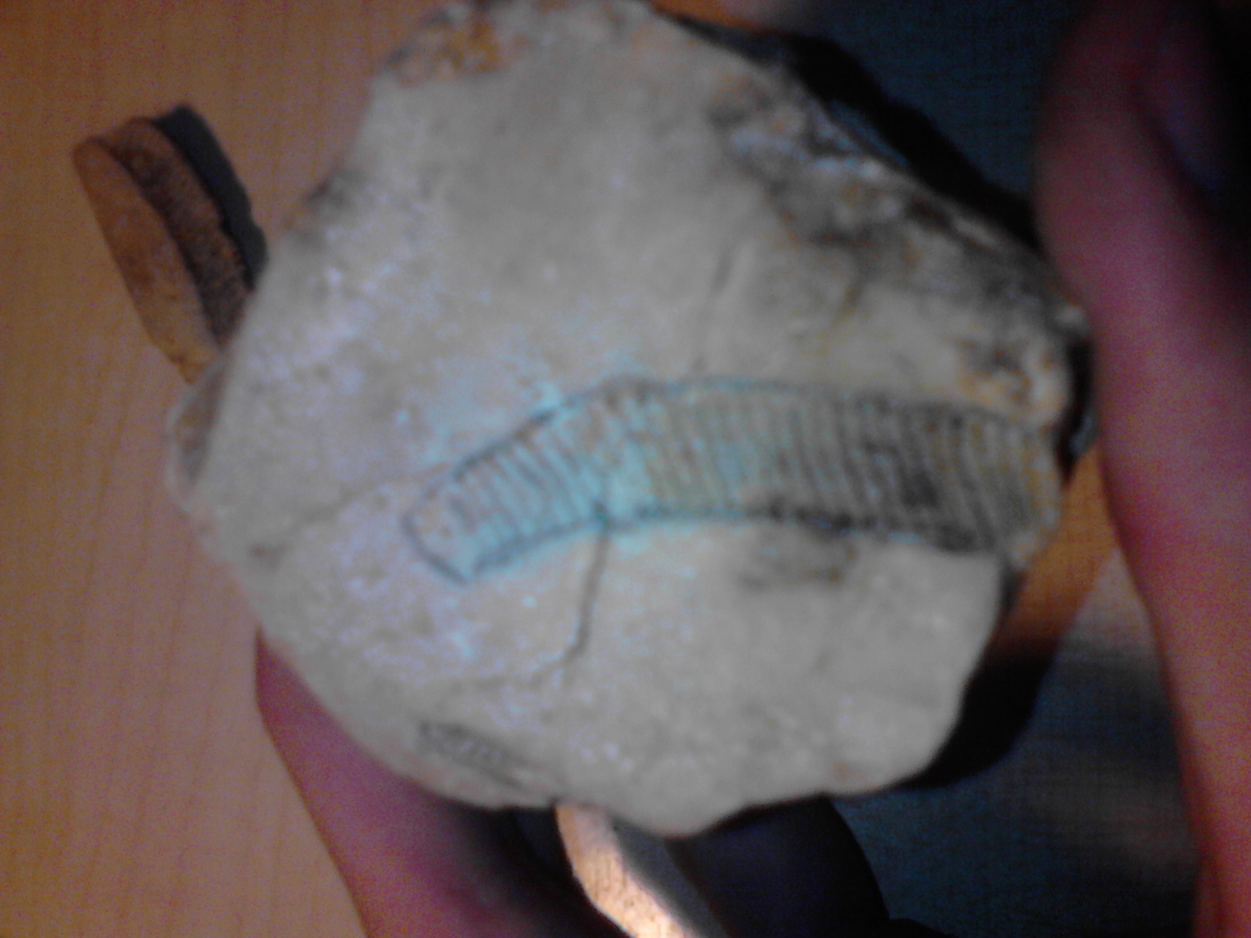 that's a sea urchin, a big sea urchin. It's not visible on my potato cam, but you can see spike holes and on some other broken pieces of shells I've found you can see tendom structure.