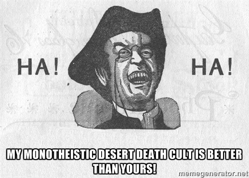 Sorry man, I think we're taking this different levels of serious. I just got to thinking about how religion might have developed isolated from humanity, and after I got over ^^ by conveniently not thinking about it, it was a fun writing exercise.