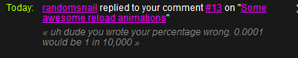 | 14. | | randomsnail your fail shall be eternal | 0 | (2015-02-07 17:32:35) |