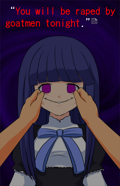 Oh. That was what I read. The facial expressions made me think it was fanmade. Huh. Umineko and Higurashi had their moments,but for the most part,the biggest threat was probably 34-tan or Satoko's uncle. I still have yet to figure out what I think of Umineko. I love both Umineko and Higurashi,but Umineko ***** with your head harder than Higurashi. ..Also small bombs.