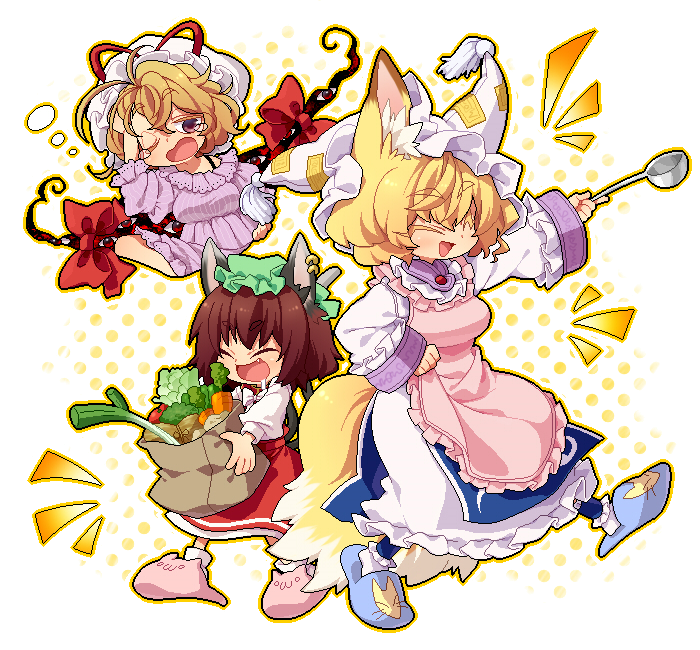 chenouttachen (08/30/2015) [-] The Touhou series of bullet hell games. Stage 2 Midboss and Boss, also Extra Stage Boss of Touhou 7, Perfect Cherry Blossom. The stylized Chen you see in a lot of the pictures here is form an artist named bkub, who does short, 4 panel comics. Those comics can be found here danbooru.donmai.us/posts?utf8=%E2%9C%93&tags=bkub+chen But I don't suggest searching for anything else unless you want weaboo porn, or just search with raiting:safe . If I've sparked your interest, and you want to play the games, go here . But if you wan't to learn about the characters and games, check here en.touhouwiki.net/ . But, if you hate bullet hell games, and reading about characters and such, I suggest at least checking out the music. It's well composed, and what drew me to the series. Have fun. | ||