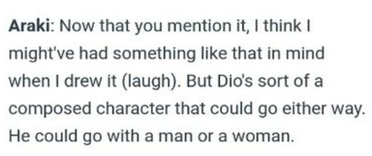 | I mean, Araki also admitted that there was lust for Jonathan from Dio, but I've seen more Kakyoin x Jotaro than anything and he has more holes than a woman. | ||