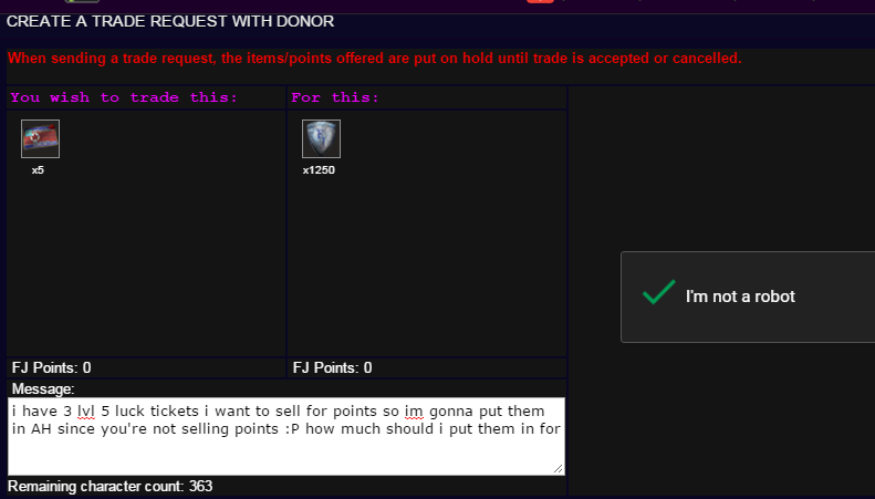 Please? I'm giving you an item that is the only one in existence AND 50,000 points.