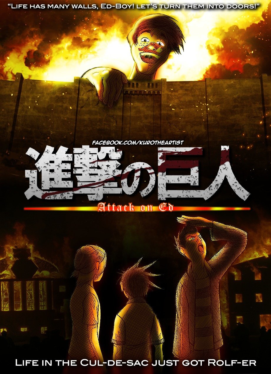 #32 - Ed, Edd, and Eddy in Attack on Titan gear attacking a Rolf-like titan  [+] (1 new reply) 03/28/2015 on Drawing for FJ (read... 0