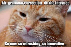 anon (01/08/2016) [-] What's wrong with correcting grammar if you're not snob about it. I, for one, would love people pointing out my grammar mistake. In a related note, just posting "I'm not going over your numerous grammar mistakes" or "Look at that grammar!" annoys me as most of the time I can't see anything wrong with grammar, whether mine or someone's else. Tl;dr Pointing out grammar mistakes nicely is good. Complaining about grammar without helping with the correction is bad manners. #52 -