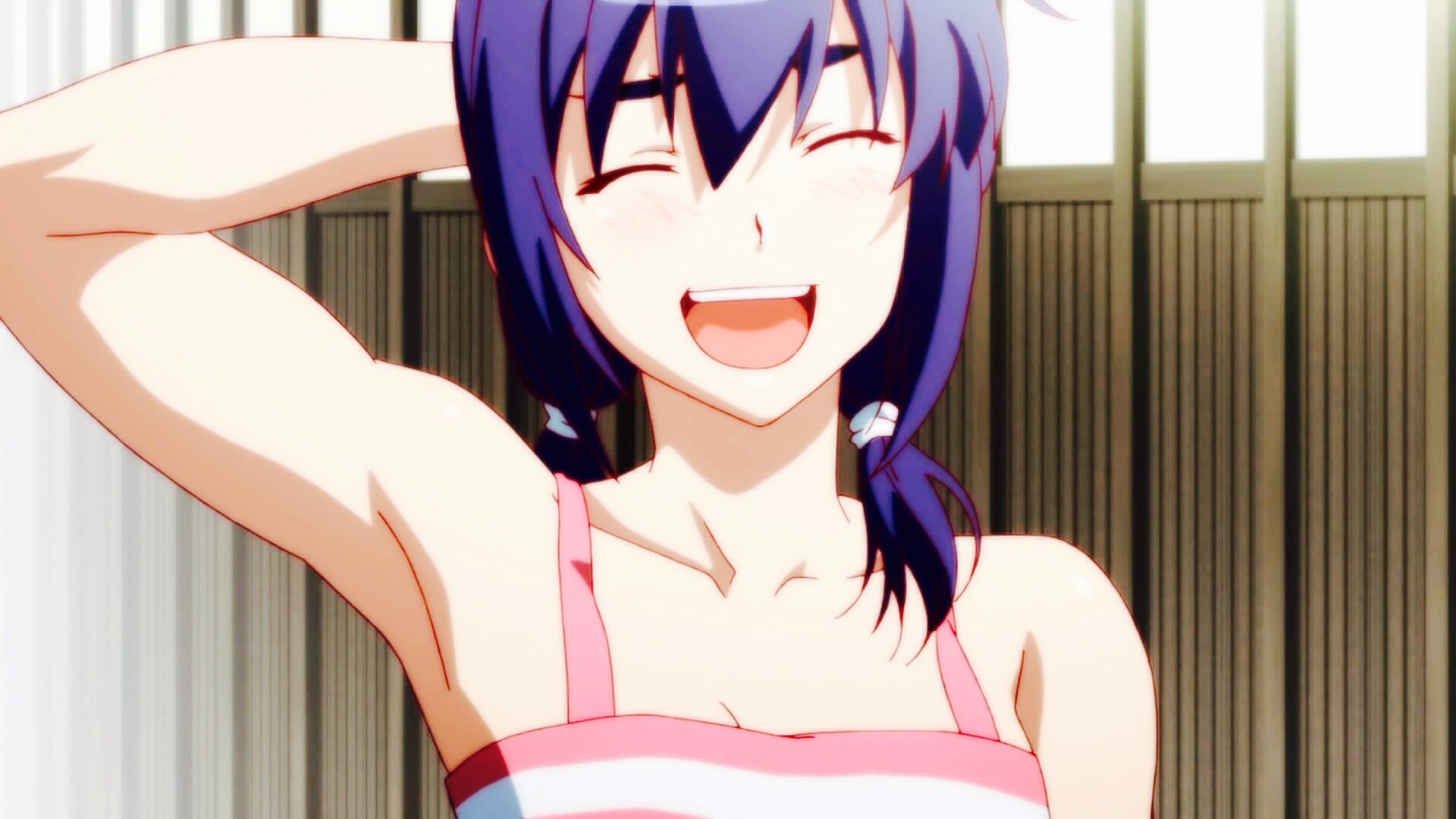 | She is indeed a very fine piece of tomboy. There's the issue of her huge throbbing ladyboner towards Senjougahara though. The prospect of being dumped like a busted TV at a landfill as soon as a piece of muff winks at her doesn't seem particularly lucrative. Plus the chick's a tad bit bananas. that one, or the first season one with the cute helmet and without the condescending arrogance. #1016066 -