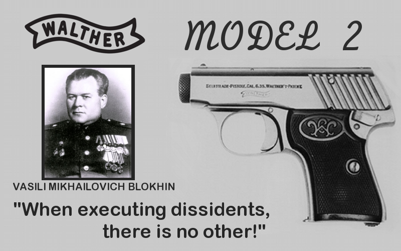 violenthandjob (06/29/2014) [-] Stalin actually had a chief executioner, Vasili Mikhailovich Blokhin. (pic related) He personally killed around 10,00 people. His style during mass executions was to have every lined up on their knees and he had a suitcase full of Walther model 2s in .25 acp, since they would seize up from getting so dirty from having thousands of rounds put through them or actually wear out and break, and he would simply go down the line putting a round in the base of everyone's skull. Misplaced comma, or missing a zero? "1,000 or 10,000?" to make is simpler. Whoops sorry, typed that up a little too fast. 10,000 is what I meant. In reality I think his personal total was closer too 8,000 but his actual contingent of men assigned to assist him executed around 30,000 "undesirables" in one single mass execution during the Soviet occupation of Poland Any knowledge on how many people Khan will have killed personally? I still imagine it's higher but I'm interested now. I actually have no idea about Kahn, I would actually be pretty interested to know that myself. Also IIRC Blokhin racked up about 4,000-6,000 of his kills during that execution in Poland | ||