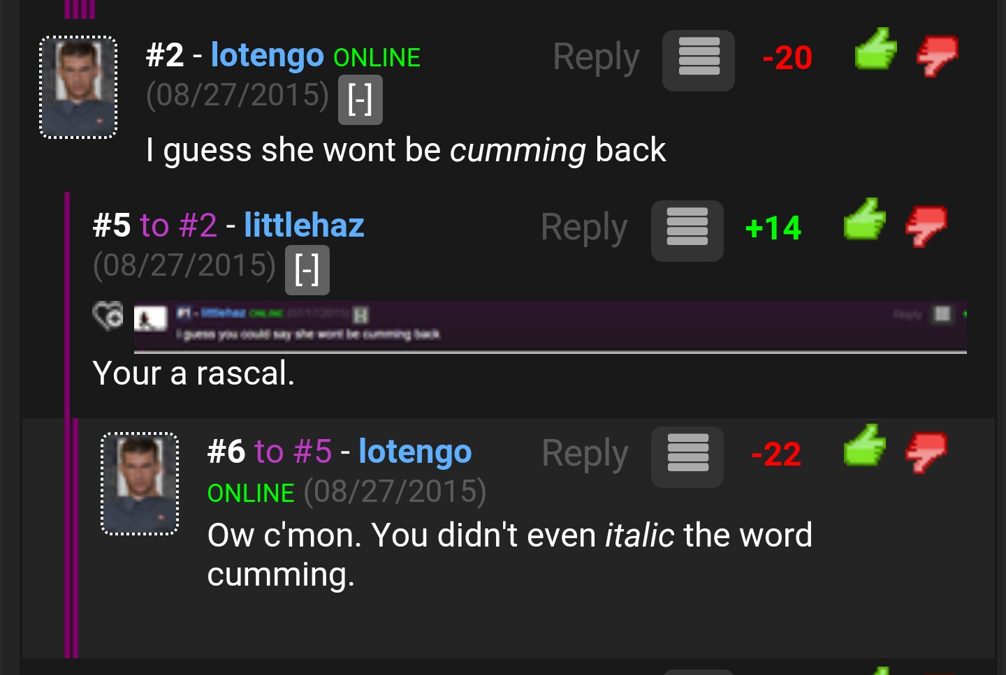 But actually, how did you even know? I haven't been posting **** about you, i haven't replied on any of your posts saying anything about you, are you that much of a thumbwhore that you find out everyone who thumbs you down, and post on their profile?