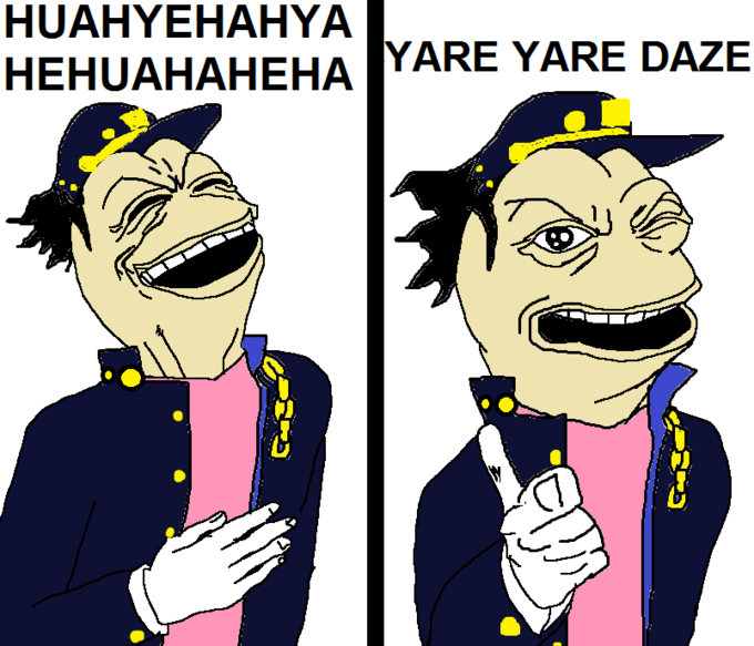 playercz (02/03/2015) [-] "No personality" he goes straight to the point, that's what makes a useful character, also Araki could make a book that covers some part of Jotaros job, like when he wrote a thesis on starfish I wonder if he had to fight the stands of the starfish also his outfit is cool af this is literally Joseph > pic related | ||
