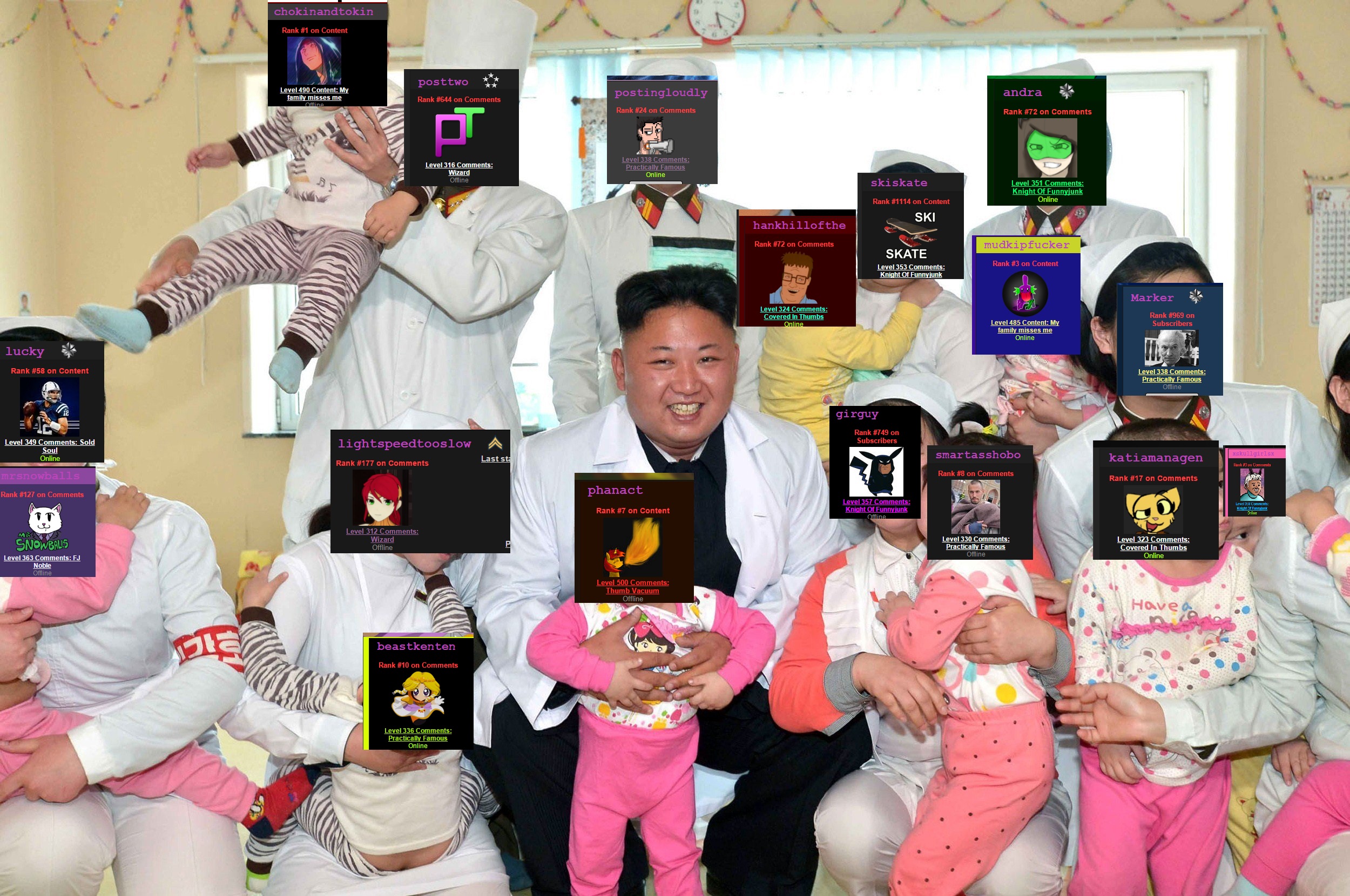 programmer (03/18/2015) [-] When admins team of mods heard that admin was in the hospital they all went over to be with him. Picture edited by mudkipfucker, all credits to him. Source: funnyjunk.com/Admin+poses+with+delighted+children/text/5479982/ | ||
