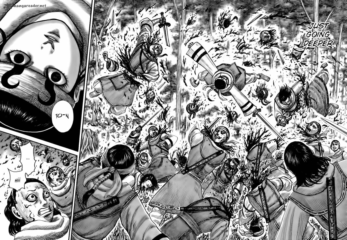 Kinda random, but I remember the only other manga series I ever read. Have you ever read the Buddha manga by Osamu Tezuka(same guy who created Astro-Boy)? It's a bit like Kingdom, but more focused on philosophy than strategy. Surprisingly violent for a manga about the most peaceful person in histroy. But regardless, it's a fantastic series, although I didn't realize it was a manga when I first read it a few years ago. If you want, read it here. www.mangareader.net/buddha/1