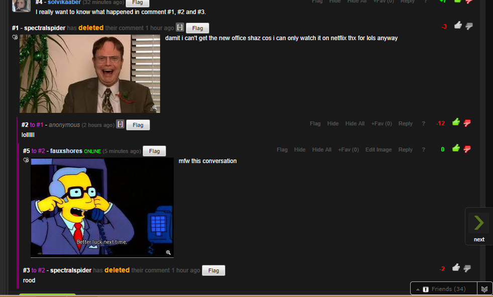 | #4 - I really want to know what happened in comment #1, #2 and #3. [+] (7 new replies) | 09/06/2014 on The Office Joke | +86 |