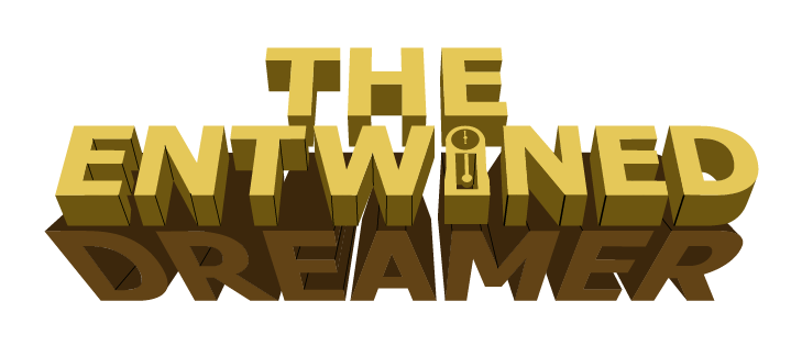 I need a fairly "blocky" (it's based on minecraft) logo saying "The Entwined Dreamer". Also if you can make it with gold and brown colours, with glowing text, that would be awesome.