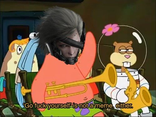 All of the memes have been destroyedNoXVBlocksBlocks prevnext Prev Next Just finished Monsoon's boss fight in Metal Gear Rising, found this. I find it humorous, don't know how many Metal Gear fans there are on FJ. prevnextTags: metal gear | Monsoon | MEMES | raiden | spongebob | full of shit are knt:: w_ § what a' meme is? who h... +8 -Favorite +Favorite Unblock User's Content Block User's Content