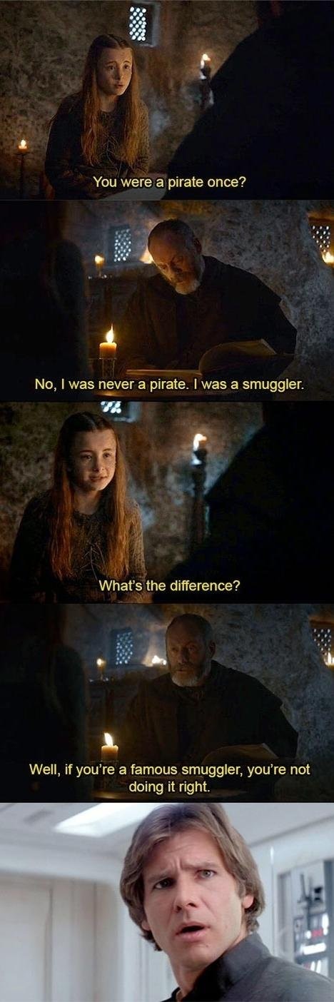 Who Shot FirstoregontrailRank: #4443Adjust content blockingContent Blocking prevnext Prev Next prevnextTags: han You were a pirate once? No, I was never a pirate.. I was a smuggler. What' s the difference? Well, if you' re a famous smuggler, you' re not doing it right.... +1500 -Favorite +Favorite Unblock User's Content Block User's Content