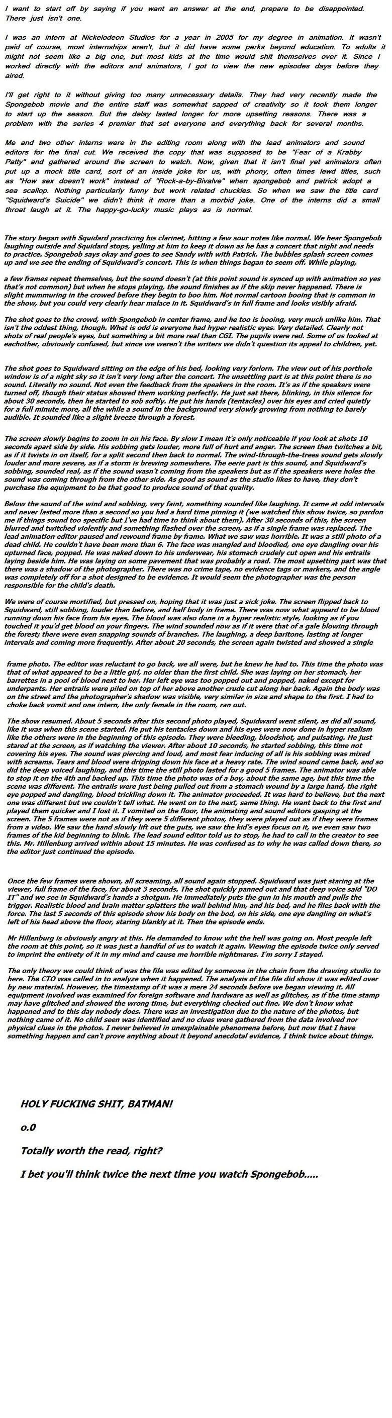 Squidward's Suicide StoryAthenaGBlocksBlocks next Prev Next Long story, but worth the read. <br /> If you like, don't forget to thumbs up! nextTags: Squidward | Suicide | fucking | creepy | shit | man +37 -Favorite +Favorite Unblock User's Content Block User's Content