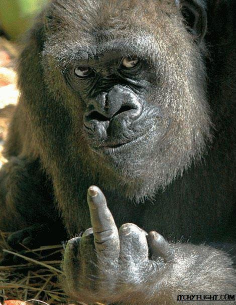 Gorilla Middle FingerstunzeeeedBlocksBlocks prevnext Prev Next "Don't put me in a zoo." - angry gorilla prevnextTags: Gorilla | funny | hilarious | Animals | lol +9 -Favorite +Favorite Unblock User's Content Block User's Content